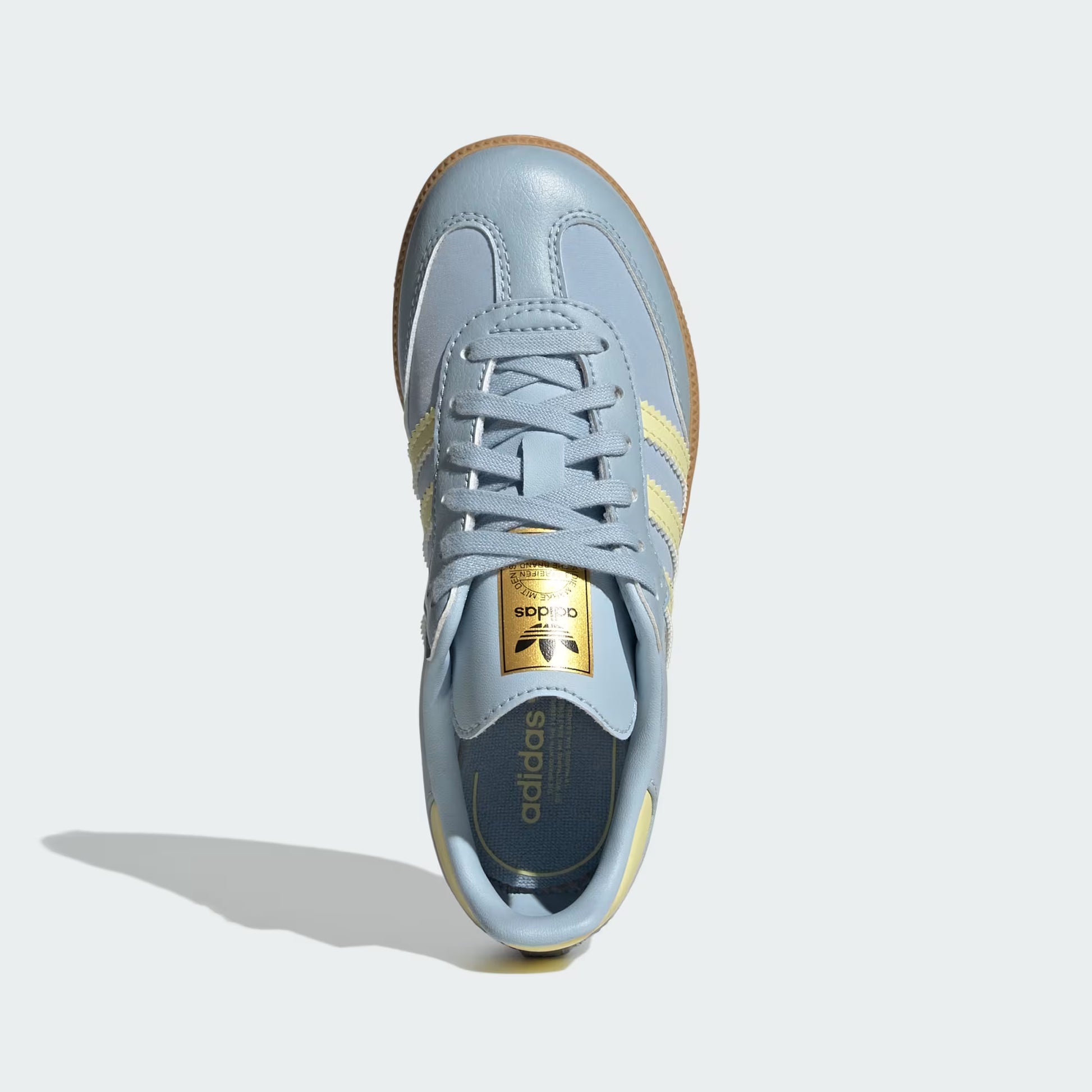 Nacidos en las canchas, perfeccionados en las calles. Cuero suave de primera calidad, las icónicas tres franjas y suela de goma que garantiza tracción en cualquier superficie. Este azul celeste con detalles amarillos y suela gum les da un toque fresco y diferente al clásico.