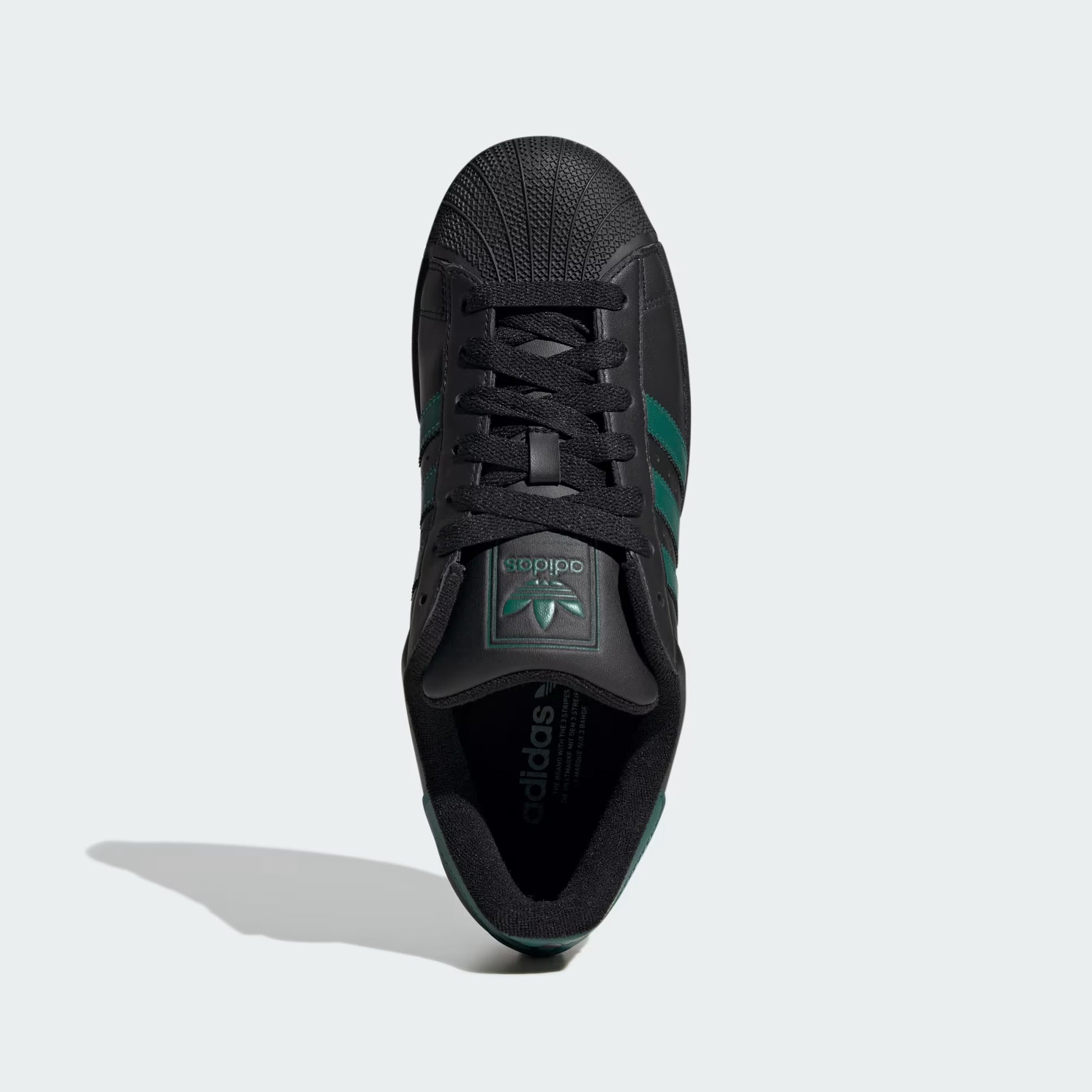 Total black con franjas en verde bosque profundo. La evolución del icono que revolucionó el streetwear, ahora con un twist contemporáneo que rompe esquemas. La puntera shell toe legendaria mantiene su esencia mientras el colorway eleva tu juego al siguiente nivel. Cuero premium de punta a punta. Versatilidad absoluta con edge urbano. Para los que no necesitan gritar para ser escuchados, su estilo habla por ellos.