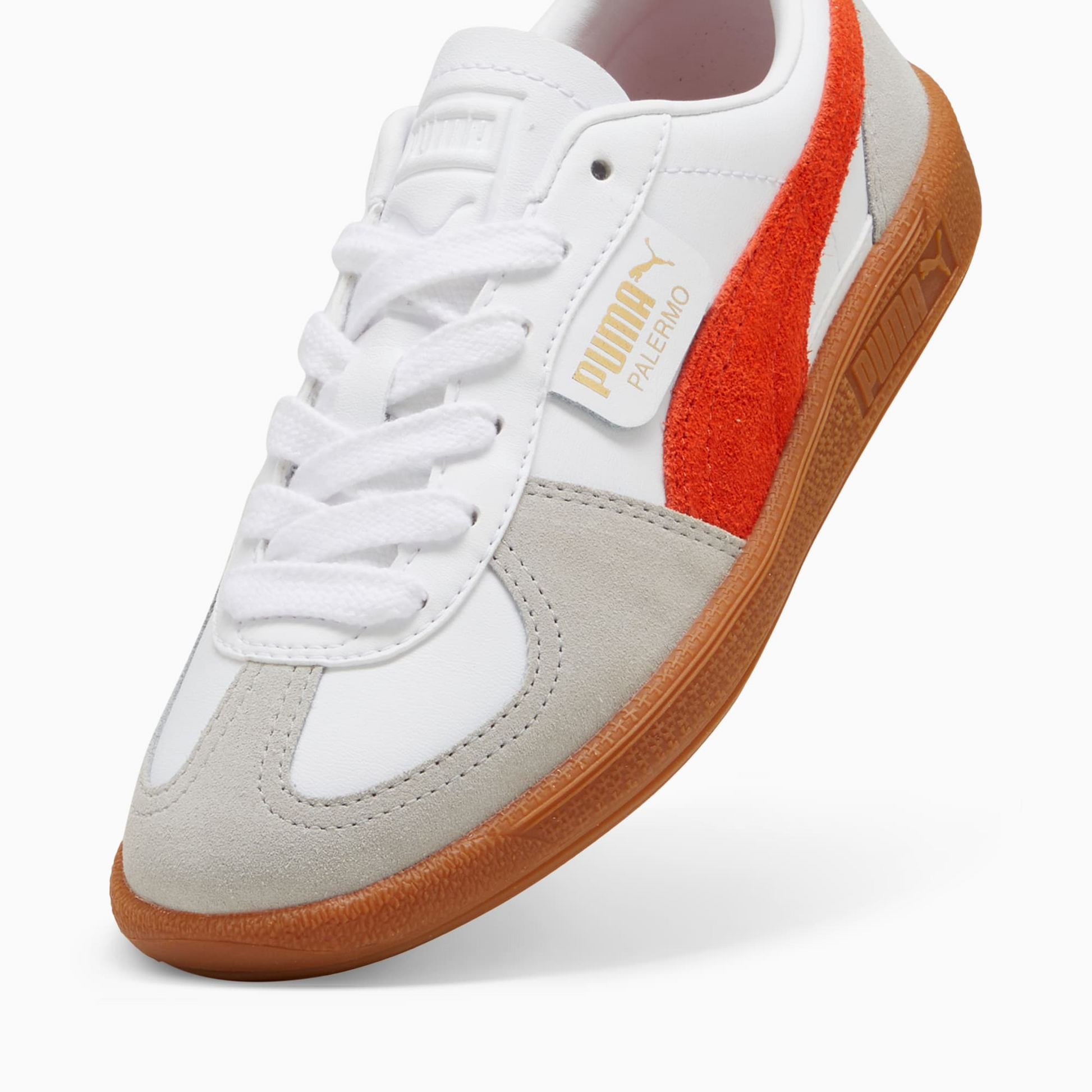 Traídas directo de nuestros archivos, vuelven las PUMA Palermo. Este modelo debutó a principios de los años 80 y se convirtió rápidamente en un clásico de los estadios de fútbol; ahora, lo trajimos de vuelta para los fans. Esta versión juvenil cuenta con la emblemática etiqueta en la cubierta, el característico empeine en forma de T y la suela de goma del modelo original.